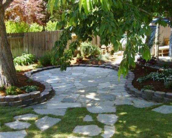 - In a flat garden, create a circular pebbled or paved patio away from the house and plant fine foliage trees and soft grasses on the periphery to create a restful nook within your garden that you can use as a secondary, informal seating area, ornamented with easy-care, iron furniture and a few easily relocated pots.