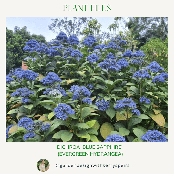 😍A favourite pairing /plant combination of mine is 'Blue Sapphire' with red flax. Dichroa also makes a wonderful standalone planting and leafy screening 🍃🍃🍃😎 to around 2m high.