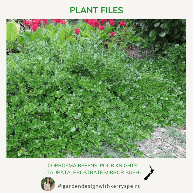 πTalk about an overachiever! Coprosma repens 'Poor Knights' is one of those useful plants that just goes with just about everything.