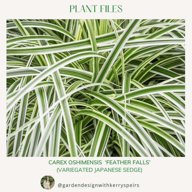 Carex oshimensis āFeather Fallsā (commonly called āvariegated Japanese sedgeā ) is a well-behaved, mid-sized sedge, ideal for your low-maintenance garden. Did I mention itās gorgeousš