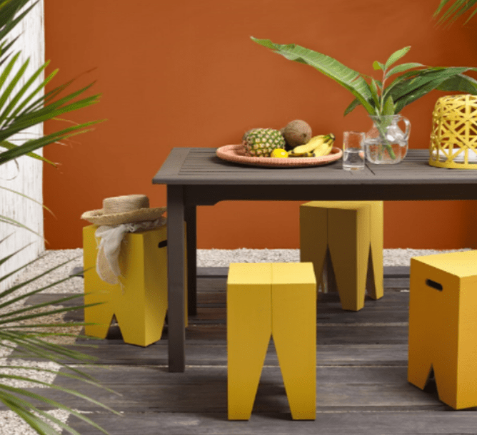 Garden furniture, especially seating, doesn’t have to be dull or neutral and a bright yellow garden bench or chair is an easy way to a splash of sunshine to your garden vista. Again, paint is your friend. Whether you prefer canary, lemon or mustard yellow, use a to makeover a tired old piece of garden furniture. Harcourts published a great blog a while back which featured seats in an array of gorgeous yellow tones. The colours used in their photo are Aloha’ (at back), Resene Malarkey (right) and Resene Celebrate (left and front).